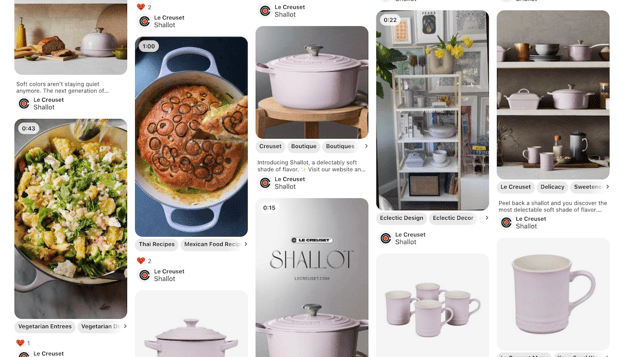 Le Creuset’s Pinterest account offers recipe ideas as well as product images for users to “pin” to their personal boards and use as inspiration.