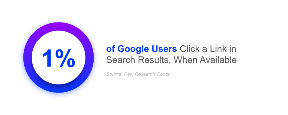 However, studies show that people rarely click on these cards. In a survey of U.S. adults, Pew Research Center found that only 1% of Google users clicked a link in a summary on pages displaying one.