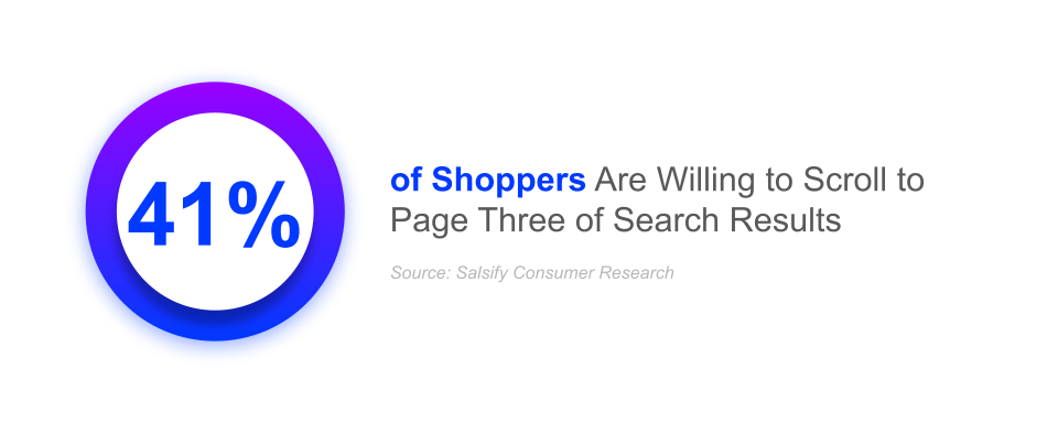 However, many shoppers are willing to invest more time to find what they want. Salsify’s “2025 Consumer Research” report found that 41% of shoppers said they would look up to page three — with 26% even willing to look up to page 5 — before clicking on a page to find the right product.