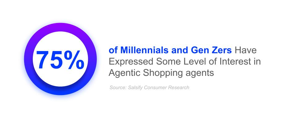Consumer interest is following a similar trajectory, though it's not entirely uniform across generations. The majority of Gen Zers (75%), millennials (75%), and Gen Xers (60%) have some level of interest in AI shopping agents, though most baby boomers (62%) aren’t interested, according to Salsify’s “2026 Consumer Research” report.