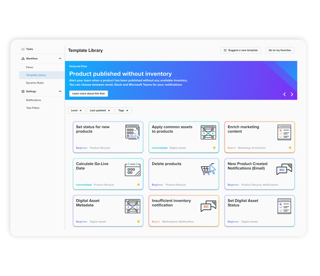 Implement multistage, parallel-path business workflows so your teams can align around consistent product content optimization processes that fit your operation.